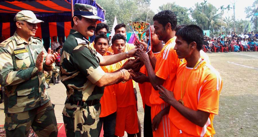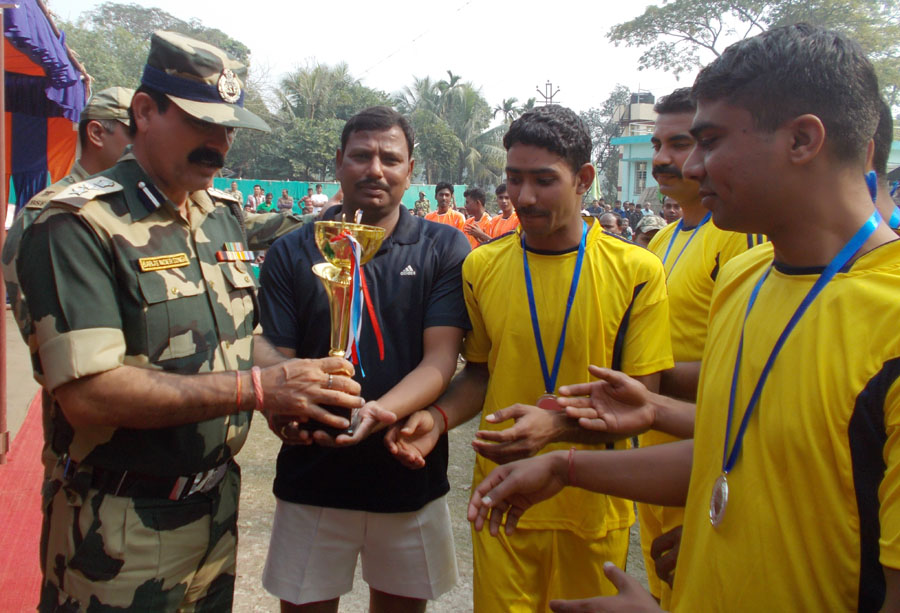 ইউ.সাহা, বাগদা- বি.এস.এফ জওয়ানদের সার্ব্বিক সহযোগীতায় কুলিয়া স্পোটিং ক্লাবের পরিচালনায় বি.এস.এফের ফাইটার ইলেভেন টিম ও স্থানীয় কয়েকটি ক্লাবের অংশ গ্রহনে কুলিয়া ফুটবল মাঠে সু-শৃঙ্খল ভাবে অনুষ্ঠিত হলো তিন দলীয় নক-আউট ভলিবল টুর্ণামেন্ট৷ দর্শনীয় এই ভলিবল টুর্ণামেন্ট দেখতে দর্শকদের ভীড় জমেছিল চোখে পড়ার মতই৷ এই টুর্ণামেন্টে বি.এস.এফের ফাইটার ইলেভেন টিম কুলিয়া স্পোটিং ক্লাবকে ৫ পয়েন্টে হারিয়ে রানার্স আপ এবং বিএসএফের ফাইটার ইলেভেনকে ২ পয়েন্টে হারিয়ে কাশীপুর একাদশ বিজয় ট্রফি ছিনিয়ে নেয়৷ দর্শনীয় এই ভলিবল টুর্ণামেন্টে বিজয়ীদের পুরস্কার প্রদান ও প্রধান অতিথি হিসাবে উপস্থিত ছিলেন, বিএসএফের ১নং ব্যাটেলিয়নের সি.ও বার্জেন্দ্র সিং৷ বিশেষ অতিথি হিসাবে উপস্থিত ছিলেন, বিএসএফের ১নং ব্যাটেলিয়নের ডি.সি এন.পি সিং৷ কমান্ডেন্ট বার্জেন্দ্র সিংয়ের হাত থেকে বিজয়ী ট্রফি গ্রহন করেন কাশীপুর একাদশের ক্যাপ্টেন ইদ্রিস আলী৷ রানার্স আপ ট্রফি গ্রহন করেন বি.এস.এফের ফাইটার ইলেভেন টিমের ক্যাপ্টেন কোম্পানী কমান্ডার এ.সি নরেন্দ্র৷