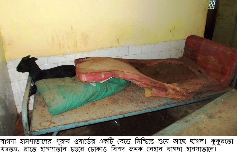 বাগদা গ্রামীন হাসপাতালের বেডে ছাগল !!
