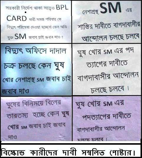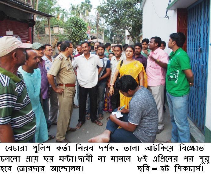 হট রিপোর্ট, বাগদা বিদ্যুৎ অফিসের কর্মকর্তা এস. সাধুখাঁর বিরুদ্ধে সীমাহীন দুর্নিতি, দালালের মাধ্যমে ঘুষ গ্রহন করে অবৈধ সংযোগ প্রদান, পুলিশ প্রশাসনের ভয় দেখিয়ে চাষী সহ সাধারণ মানুষের হয়রানি, ঘুষ ছাড়া নতুন সংযোগ না দেওয়া, বি.পি.এল তালিকা ভুক্তদের হাজার হাজার টাকার অবৈধ বিল দিতে বাধ্য করার অপরাধে গত ৩রা এপ্রিল সাড়ে বারটার দিকে হঠাৎই বাগদার মানুষ উক্ত অফিসারের বদলির দাবীতে গর্জে ওঠে দলে দলে এসে বিদ্যুৎ অফিসের সামনের গেটে তালা লাগিয়ে অফিস কর্মচারীদের আটকে দিয়ে বিক্ষোভ দেখাতে থাকে৷ প্রায় ৫/৬ ঘন্টা তালাবন্ধ অবস্থায় অফিসের ভিতর আটক থাকার পরও এস.এস সাহেব অফিসের ষ্টাফদের মুক্ত করতে অফিসে আাসেননি পরে বাগদা বিদ্যুৎ অফিসের এসিষ্টেন ইঞ্জিনিয়ার লালু বাবু ও বাগদা থানার সেকেন্ড অফিসারের প্রচেষ্টায় আগামী বুধবার বিকাল ৩টায় উর্ধ্বতন কর্মকর্তাদের নিয়ে বসার আশ্বাসে অবরোধ ওঠে৷ বাগদাবাসীর এই অবরোধের সাথে একাত্ততা প্রকাশ করে বাগদা গ্রাম পঞ্চায়েতের উপ-প্রধান অমুল্য হালদার, বাগদা পঞ্চায়েত সমিতির সদস্য মদন উকিল ও শিক্ষিকা মাধুরী সরকার বলেন, বাগদা বিদ্যুৎ অফিসের কর্মকর্তা এস. সাধুখাঁ একজন রক্ত শোষক অফিসে পোষা দালালদের মাধ্যমে টাকা না পেলে উনি কোন কাজই করেন না, অফিসের গাড়ীতে উঁনি বনগাঁ যাতায়াত করেন, সময় মত অফিসে ঢোকেন না, ওনার ব্যবহারেও সাধারণ মানুষ অতিষ্ঠ৷ ওঁনার সাথে কথা বলতে গেলে সিকিউরিটি দিয়ে তাকে বের করে দেন৷ এমনকি উঁনি কোন জনপ্রতিনিধির সঙ্গে আলাপ করা বা তাঁদের কোন প্রকার অনুরোধও রাখেন না বলে উক্ত ব্যাক্তিরা জানান৷