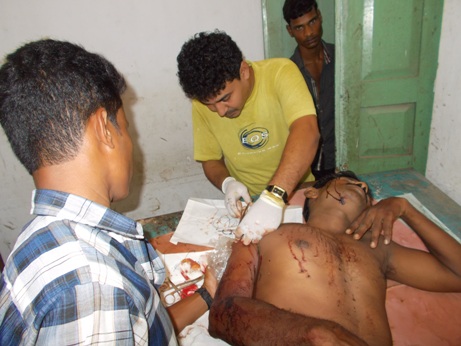এক মটরসাইকেল দুর্ঘটনাকে কেন্দ্র করে বাগদা থানার হরিহরপুর গ্রামে এক সংঘর্ষে আহত হয়ে হাসপাতালে ভর্ত্তি হল আসাদুল মন্ডল ওরফে কালু৷ জানা গেছে গত ১১ই আগষ্ট আসাদুলের ভাই রমজান মন্ডল(২৫)মটর সাইকেল নিয়ে বাড়ী থেকে বাগদা আসার পথে গ্রামের মধ্যেই মার্জ্জিদ মেম্বারের ভাইজি জুলেখা খাতুন(৮)কে ধাক্কা দিলে রমজানই তার বাইকে চাপিয়ে জখম জুলেখাকে বাগদা হাসপাতালে ভর্ত্তি করে পরে কর্তব্যরত চিকিৎসক উন্নত চিকিৎসার জন্য তাকে বনগাঁ হাসপাতালে প্রেরন করে৷ এই চিকিৎসার সমস্ত খরচ খরচার দায় এবং বনগাঁ হাসপাতালে সর্ব্বদা থেকে রোগীর দেখভাল রমজান করাতে মার্জ্জিদ মেম্বার স্বঃভবত খূশীই রমজানের উপরে৷ সে কারনে এ ব্যাপারে কোন মামলাও হয়নি৷ এই বিষয়টিতে মেম্বারের ভূমিকা তাঁর দলের অনেকেরই মনপূতো হয়নি৷ তাই প্রতিশোধ নিতেই ভিড়ের মধ্যথেকে কে বা কাহারা ধারালো অস্ত্র দিয়ে আসাদুল মন্ডল ওরফে কালুকে মাথায়, স্কন্ধে ও হাতে রক্তাক্ত জখম করে বলে হরিহর পুরের আঃ হাই মন্ডল জানান৷ তিনি আরো জানান, দু’পক্ষের মধ্যে রাজনৈতিক ভাবে দলগত পার্থক্য থাকলেও মার্জ্জিদ মেম্বারের ভূমিকা প্রশংনীয় তা না হলে গত বারের মত রক্তক্ষয়ী সংঘর্ষ অবশ্যম্ভাবী ছিল৷