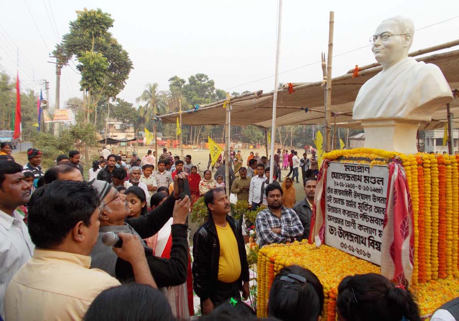 হট নিউজ, বাগদা, বঙ্গভূমির অনগ্রসর জাতিভুক্ত মানুষদের মুক্তিসংগ্রামের মহানায়ক এবং অনগ্রসর সম্প্রদায় ভূক্ত হিন্দু-মুসলমানদের ঐক্যবদ্ধ আন্দোলনের উদগাতা বাগদা ব্লকের মহাপ্রান যোগেন্দ্র নাথ মণ্ডলের ১১৩ তম জন্মদিবস উপলক্ষ্যে হেলেঞ্চা ৫নং কলোনী ময়দানে যোগেন্দ্র স্মৃতি সংঘ, মর্য্যাদা সরক্ষা আন্দোলন কমিটি ও মহাপ্রান যোগেন্দ্র নাথ স্মৃতি সংসদ যৌথ ভাবে ২দিন ব্যাপী এক গুচ্ছ কর্মসূচী গ্রহন করে৷ কর্মসূচী গুলির মধ্যে ছিল উদ্বোধনী সঙ্গীত পরিবেশনের মধ্য দিয়ে পতাকা উত্তোলন, মহাপ্রান যোগেন্দ্র নাথের প্রতিকৃতিতে মাল্যদান, অঙ্কন ও ক্যুইজ প্রতিযোগীতা, মহাপ্রান যোগেন্দ্র নাথের জীবনযাত্রা ও কর্মকান্ডের উপর আলোচনা, সাংস্কৃতিক অনুষ্ঠান, নাটক, আদিবাসী মহিলাদের ঝুমূর নৃত্য, মহাপ্রান যোগেন্দ্র নাথের আবক্ষ মুর্তির আবরণ উন্মোচন, সম্বর্ধনা অনুষ্ঠান ও বিজয়ীদের মাঝে পুরস্কার বিতরন৷ দু’দিন ব্যাপী এই অনুষ্ঠানের মধ্যে পতাকা উত্তোলন ও মহাপ্রান যোগেন্দ্র নাথের প্রতিকৃতিতে মাল্যদান, বিজয়ীদের মাঝে পুরস্কার বিতরন এবং তাঁর আবক্ষ মুর্তির আবরণ উন্মোচন করেন, তাঁর সু-যোগ্য ভাবশিষ্য, বাগদার বিধায়ক তথা পশ্চিমবঙ্গ সরকারের অনগ্রসর শ্রেনী কল্যান মন্ত্রী ডঃ উপেন্দ্র নাথ বিশ্বাস৷
