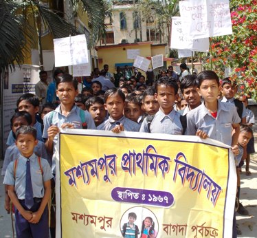 প্রিয় শিক্ষকের বদলি রদের জন্য স্বতঃস্ফুর্ত মিছিল করলো বাগদা ব্লকের সীমান্তবর্তী মশ্যমপুর প্রাথমিক বিদ্যালয়ের ছাত্র-ছাত্রী, শিক্ষক-শিক্ষিকা বৃন্দ ও ছাত্র-ছাত্রীদের অবিভাবক বৃন্দরা৷ গত ৩রা মার্চ্চ ব্যানার ও ফেষ্টুন সহকারে শ্লোগানে শ্লোগানে মুখরিত একটা মিছিল মশ্যমপুর প্রাথমিক বিদ্যালয় থেকে বাগদা বিডিও অফিসে পৌছে এবং বিডিও সাহেবা ও এস আই সাহেবকে পৃথক পৃথক ভাবে দ্রুত বদলি রদের জন্য সবিনয়ে আবেদন জানান৷ প্রাক্তন প্রধান শিক্ষিকা সন্ধ্যা সর্দ্দার(বিশ্বাস), বিমল বাড়ৈ, শ্যামল ঘোষ, আনোয়ার হোসেন মন্ডল,পাপিয়া সাঁতরা, গায়িত্রী বিশ্বাস, প্র্র্রমুখ অবিভাবকবৃন্দ স্বাক্ষরিত উক্ত আবেদন থেকে জানা গেছে মশ্যমপুর প্রাথমিক বিদ্যালয়ের শিক্ষক তাপস রায় একজন সু-শিক্ষক, বিদ্যালয়ের ও পারিপার্শিক অঞ্চলের সার্ব্বিক উন্নয়নেও তাপস বাবুর যথেষ্ট অবদান রয়েছে ওঁনাকে ছাড়া মশ্যমপুর প্রাথমিক বিদ্যালয় অসম্পুর্ন, ছাত্র-ছাত্রী, শিক্ষক-শিক্ষিকা বৃন্দ ও সংশ্লিষ্ট এলাকাবাসী অবিভাবকহীন হয়ে পড়বে৷