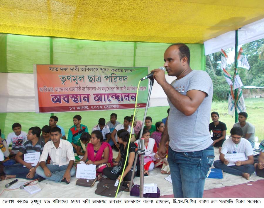 হেলেঞ্চা বি.আর.আহম্মেদকর শত-বার্ষিকী মহাবিদ্যালয়ে তৃণমুল ছাত্র পরিষদের অবস্থান কর্মসূচী পালন
